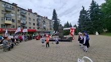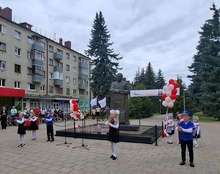 Воспитанники детского сада приняли участие в митинге с музыкальным номером и прочитали стихи.