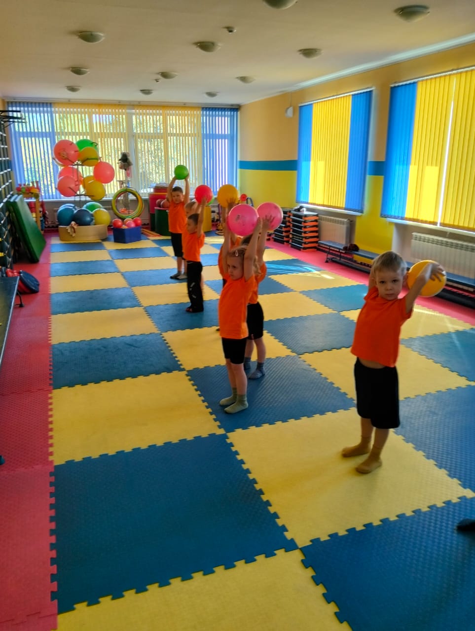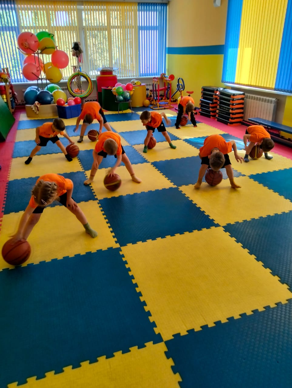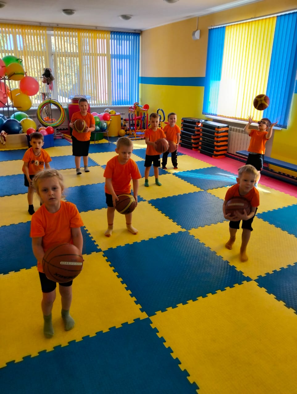 На занятиях создаются условия для обучения детей владению мячом. Дети приобретают первичные навыки спортивных игр: пионербола, футбола, баскетбола, волейбола.