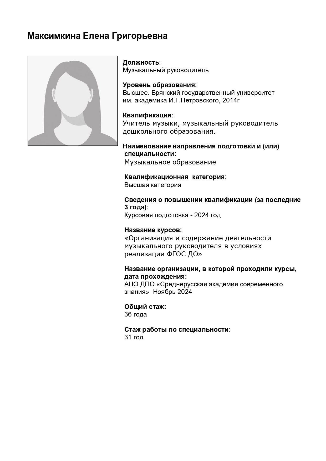 Максимкина Елена Григорьевна (музыкальный руководитель)