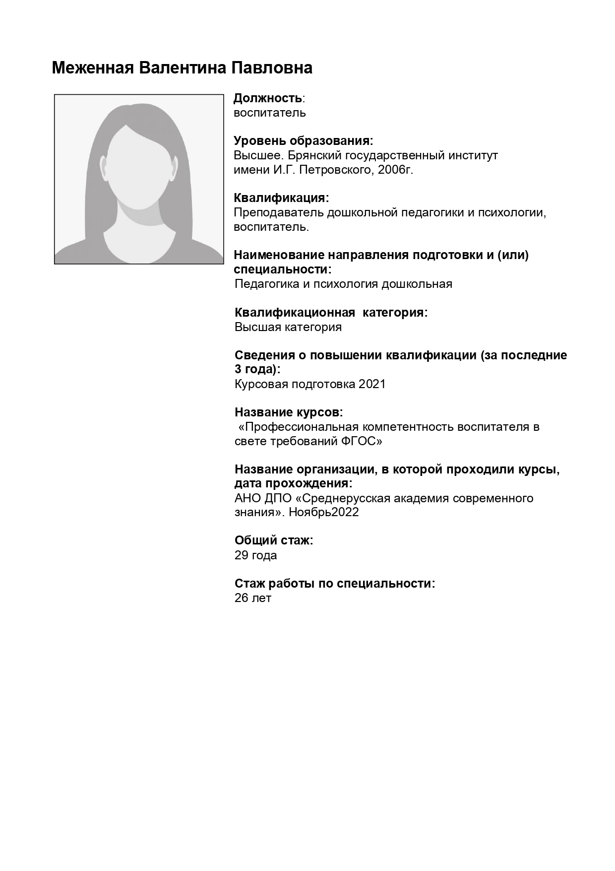 Сведения о педагогических кадрах, реализующих образовательную программу дошкольного образования