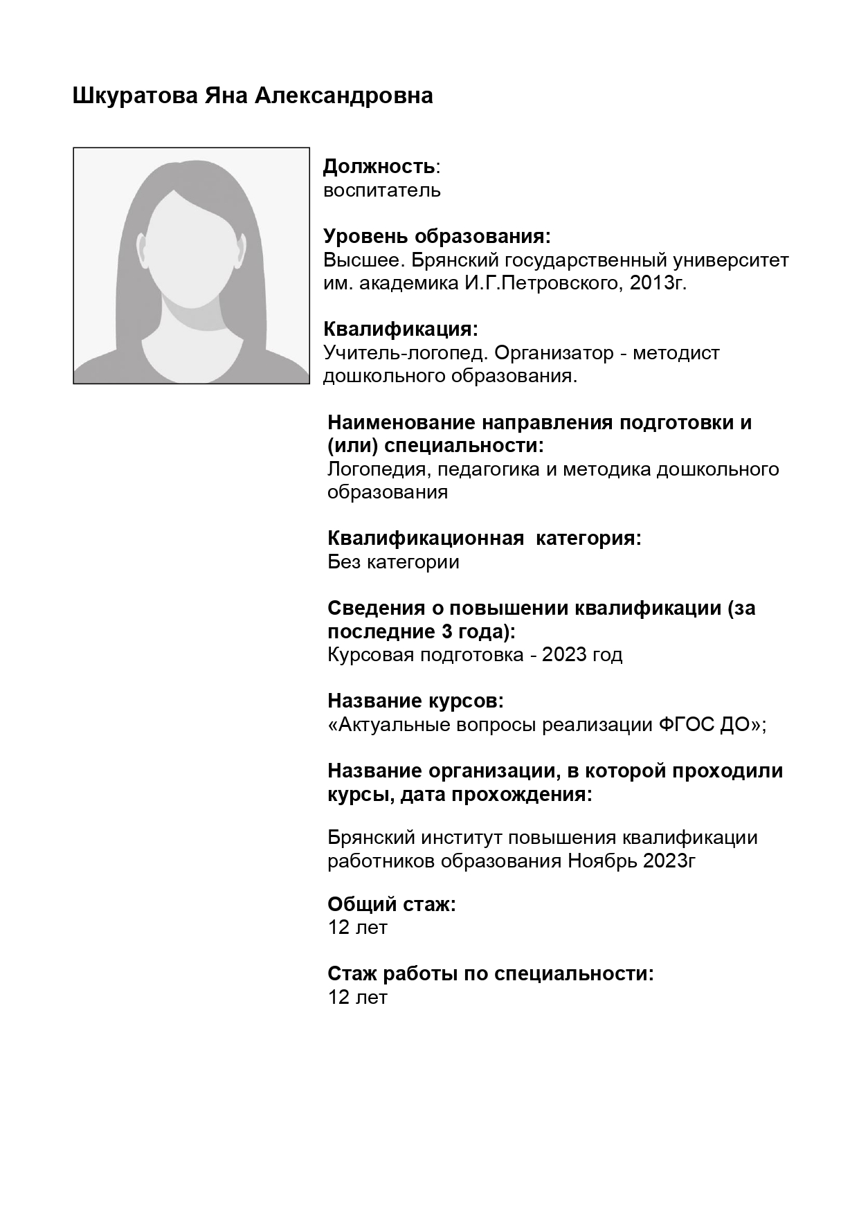 Кузнецова Татьяна Сергеевна (воспитатель)